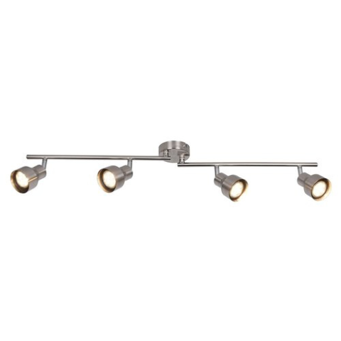 A modern stílusú Blake négyes spotlámpa a lakás számos helyiségébe jó választás lehet: felszerelhetjük a nappaliban, a hálószobában, de az étkezőben vagy akár a konyhában is. A teljes egészében fémből készült, szatinkróm színű lámpa kerek dísztalp segítsé..