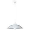 Romantikus megjelenésű függeszték, 30 cm átmérőjű, mintás üvegbúrával. Fix vezetékezés, 90 cm-es hosszúság, fehér üveg lámpabúrával, fekete virágmintával. Használható valamennyi E27-es, maximum 60W teljesítményű, halogén vagy LED fényforrással. Kialakítá..