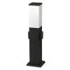 Időtlen megjelenésű kültéri talpas lámpa hálózati csatlakozó (dugaszoló) aljzattal, 1 db foglalattal. 50 cm magas, 12,5 cm széles, matt fekete színű fémből és fehér színű műanyagből készített lámpatest, UV sugárzásnak ellenálló, illetve IP44-es, azaz...