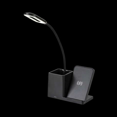 A Rábalux Cerie asztali lámpa ideális választása lehet a funkcionalitást és stílust keresőknek. Praktikus társ a dolgozó- vagy gyerekszobában, hiszen amellett, hogy kellő fényt biztosít, beépített toll- és telefontartóval rendelkezik, ezáltal könnyedén rendet tarthatunk vele az asztalon. A telefontartó vezeték nélküli töltést is biztosít egyben. Az okos LED asztali lámpa fekete műanyag testével elegáns megjelenést biztosít. A beépített LED technológia révé