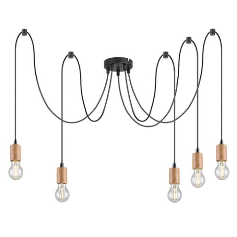 1 kép RÁBALUX Rábalux Dollien fekete-bükk függesztett lámpa (RAB-72075) E27 5 izzós IP20