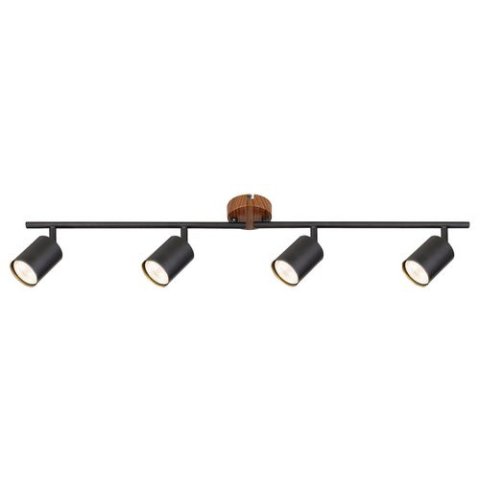 Az Edmund Rábalux 5298 spot lámpa négy GU10 foglalattal rendelkezik, amelyek cserélhető fényforrások elhelyezésére alkalmasak. A lámpatest fém anyagból készült, fekete és fa színkombinációban, vintage stílusban. Az állítható kivitel lehetővé teszi a fény