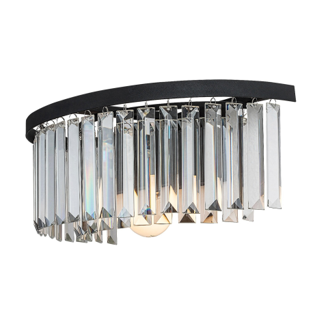 A klasszikus stílusú, elegáns Eloisa fali lámpát elsősorban a nappaliba vagy a hálószobába ajánljuk. A fémből készült, fekete színű lámpatestet átlátszó üvegfüggők egészítik ki, amelyek félkör alakban függönyként takarják a fényforrást, és csillárszerű me..