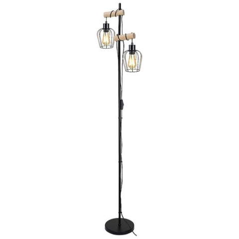 Az indusztriális stílusú Fabian állólámpa a nappali vagy a hálószoba berendezésének összetéveszthetetlen darabja lehet. A matt fekete lámpatestből és az ugyanilyen színű, rácsos búrákból álló modell fémből és fából készül, melyet egy kerek dísztalp egészí..