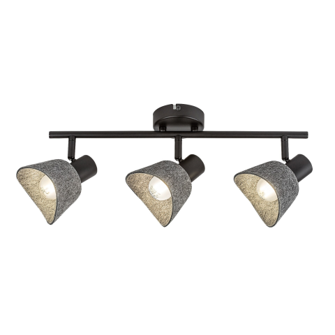 A Rábalux Farelia hármas mennyezeti spotlámpát azoknak ajánljuk, akik kedvelik az egyedi megjelenésű, otthonos hangulatot árasztó lámpákat. Ez a modell fekete színben, fémből, szürke színű filc búrákkal készül. A búra filc anyaga környezetbarát, újrahaszn..