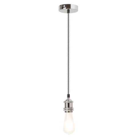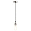 Indusztriális stílusú függeszték 1 db foglalattal. 80 cm lelógású, ezüst színű fém szerkezet és foglalat, szövött ’vasalókábel’ vezetékkel. A függeszték E-27-es foglalatú, max. 40W teljesítményű energiatakarékos fényforrással, így akár a különleges megjel..