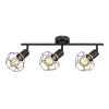A vintage stílusú Fran hármas mennyezeti lámpát elsősorban a nappaliba vagy a hálószobába ajánljuk. A teljes egészében fémből készült, matt fekete lámpa gyémánt formára emlékeztető, rácsos búrákkal egészül ki, és kisméretű, kerek dísztalp segítségével rög..
