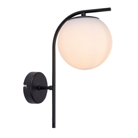A modern stílusú Ghita fali lámpa kreatív formatervezésével és fekete-fehér színkombinációjával számos modern nappali berendezésének hangulatos és bájos darabja lehet. A fémből készült, fekete színű modellt a gömb alakú, fehér üvegbúra teszi jellegzetessé..