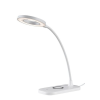 A modern Hardin asztali lámpa számos extra funkciójával nélkülözhetetlen társa lesz a dolgozószobában vagy bármely íróasztalnál. A teljes egészében műanyag okos lámpa fehér színben fehér búrával készül, a lámpafej fánk formájú, a téglalap alakú dísztalp l..