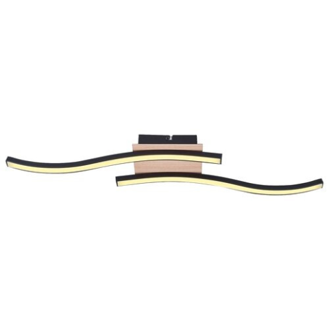A Heimdall Rábalux 2280 hullámos mennyezeti LED lámpa modern designnal és kiváló műszaki paraméterekkel rendelkezik. A lámpatest matt fekete és fa hatású elemekkel készült, anyaga fém és műanyag. A beépített 12 W teljesítményű LED modul 700 lumen fényáram