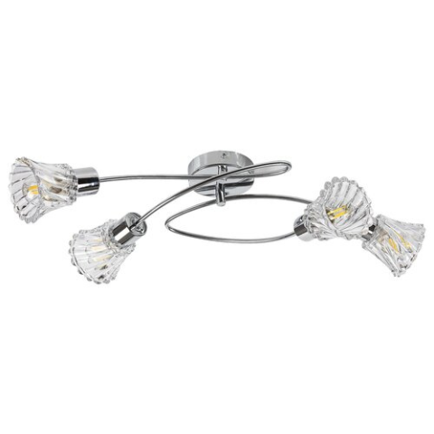 A klasszikus stílusban készült Hestia négyes spotlámpa nappalink vagy hálószobánk berendezésének elegáns darabja lehet. A krómszínű, indaszerűen kanyargó, fém lámpatestet átlátszó üvegbúrák egészítik ki, a lámpa kerek dísztalp segítségével rögzíthető a me..