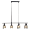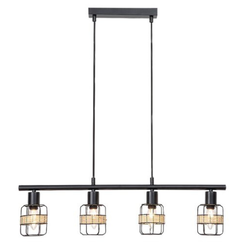 Az indusztriális stílusú Indiana négyes függeszték modern nappalink, hálószobánk, étkezőnk vagy konyhánk berendezésének jellegzetes darabja lehet. A fémből készült, matt fekete modellt a rácsos búrák, valamint a búrákon körbefutó természetes, fonott dekor..