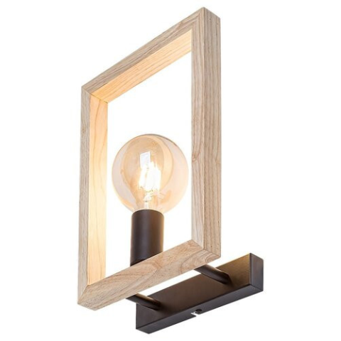A Minimál fali lámpa fa keretben, Indigo Rábalux 2289, egy skandináv stílusú, modern lakásvilágítási megoldás. A lámpatest fém és fa kombinációjával készül, fekete és fa színű kivitelben. Egy darab E27 foglalattal rendelkezik, amely cserélhető fényforrást