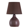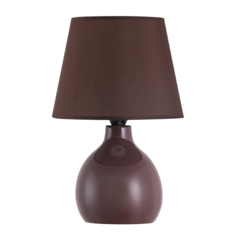 Időtlen megjelenésű éjjeli lámpa 1 db foglalattal. 28 cm magas, 17 cm átmérőjű lámpatest barna színű kerámia lámpatesttel és textil lámpaernyővel, vezetékes kapcsolóval és IP20-as védettséggel. Az asztali lámpa E-14-es foglalatkialakítású, max. 40W teljes..