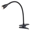 Modern megjelenésű csíptethető asztali lámpa beépített energiatakarékos LED fényforrással. 35 cm magas, fekete színű műanyag szerkezet pozícionálható fejjel, kapcsolóval. A lámpatestbe beépített LED fényforrás 4,5W teljesítmény mellett 330 lumenes fényerő..