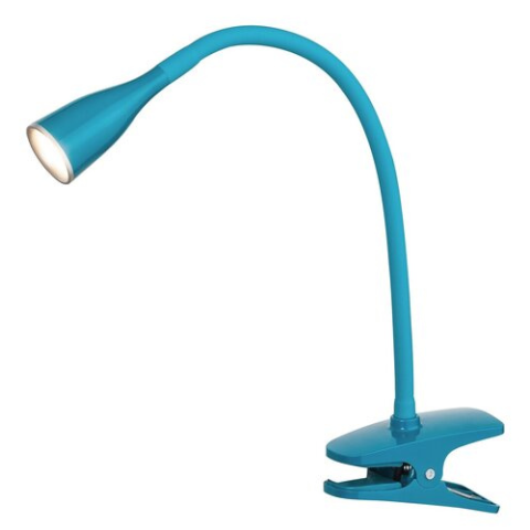 Modern megjelenésű csíptethető asztali lámpa beépített energiatakarékos LED fényforrással. 35 cm magas, kék színű műanyag szerkezet pozícionálható fejjel, kapcsolóval. A lámpatestbe beépített LED fényforrás 4,5W teljesítmény mellett 330 lumenes fényerőt, ..