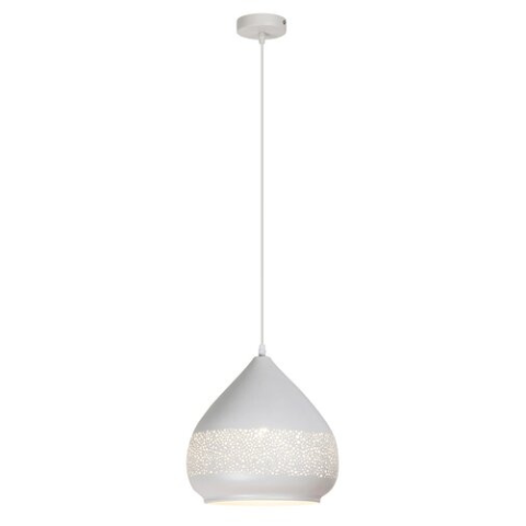 Trópusi stílusú függeszték 1 db foglalattal. 110 cm lelógású, 27 cm búraátmérőjű fém szerkezet fehér színben. A lámpatest E27-es foglalatkialakítású, max. 40W teljesítményű fényforrással használható...