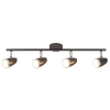 Modern megjelenésű mennyezeti spotlámpa, 4 db beépített energiatakarékos LED fényforrással. 60,5 cm széles, antracit szürke és króm színű, fémből és műanyagból készített lámpatest pozícionálható lámpabúrákkal. A beépített LED-es lámpa teljesítménye 4x4 W,..