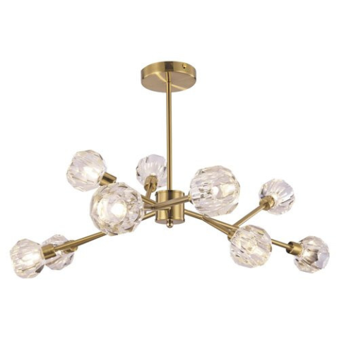 A Kassia Rábalux 5395 modern csillár elegáns arany színű fém vázzal és csiszolt, áttetsző üveg burákkal készül, mely kilenc G9-es foglalattal rendelkezik. A csillár teljes átmérője 615 mm, magassága 430 mm, tömege 7 kg. A lámpatest kizárólag cserélhető fé