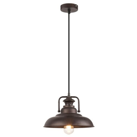 Indusztriális stílusú függeszték 1 db foglalattal. 120 cm lelógású, 31 cm átmérőjű, barna színű, fémből készített test és lámpabúra. A lámpatest E27-es foglalatkialakítású, max. 60W teljesítményű energiatakarékos fényforrással is használható...