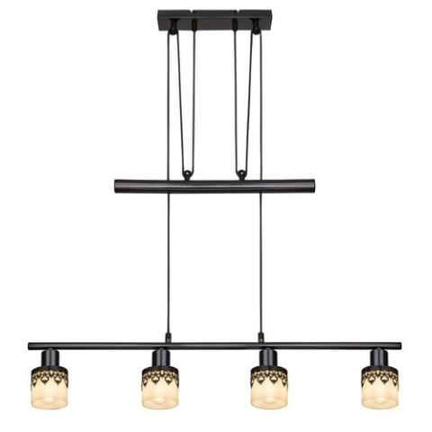 A romantikus stílusú Lacey négyes függeszték igazán különleges darabja lehet otthonunk berendezésének. Akár a nappaliban, akár az étkezőben kap helyet ez a fém és üveg kombinációjából készült, állítható magasságú modell, vendégeink biztosan nem fognak szó..