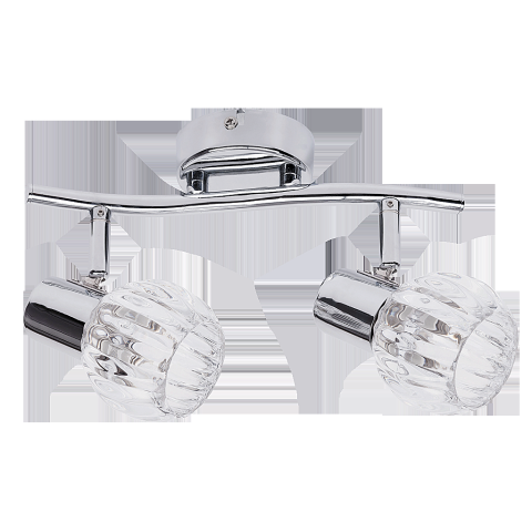 A Lauren Rábalux 6092 karos mennyezeti spot lámpa két E14-es foglalattal rendelkezik, amelyek lehetővé teszik a cserélhető fényforrások alkalmazását. A lámpatest modern stílusú, anyaga fém és üveg, felületkezelése króm, az üveg részek áttetszőek. A termék