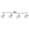 Modern megjelenésű mennyezeti spotlámpa 4 db foglalattal. 66 cm széles, króm színű fém lámpatest és pozícionálható, üveg lámpabúrák, IP20-as védelemmel. A lámpatest E-14-es foglalatú, max. 4x 40W teljesítményű energiatakarékos fényforrásokkal is használha..