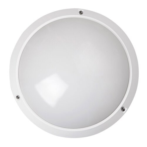 Letisztult stílusú, kültéri mennyezeti lámpa IP54-es, azaz fröccsenő víz és por elleni védettséggel. 27 cm-es átmérőjű, fehér színű műanyag lámpatest és búra. Az E27-es foglalattal ellátott lámpatest max. 60W teljesítményű, halogén vagy energiatakarékos ..