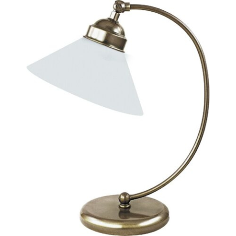 Klasszikus megjelenésű éjjeli lámpa 1 db foglalattal. 21,5 cm széles, 39 cm magas, bronz színű fém test és fehér színű üveg lámpabúra. A lámpatest E27-es foglalatkialakítású, max. 60W teljesítményű energiatakarékos fényforrással is használható...