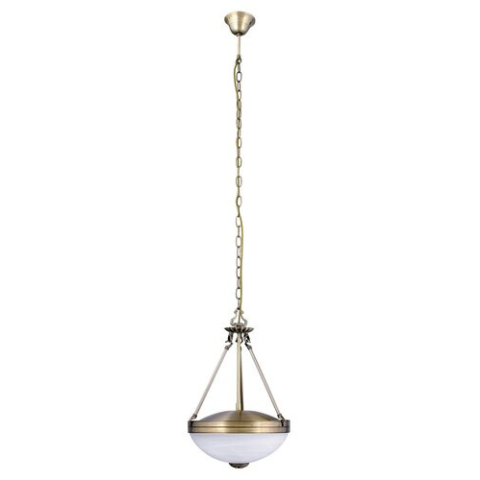 Klasszikus megjelenésű csillár 2 db foglalattal. 100 cm lelógású, 32 cm átmérőjű, bronz színű fém lámpatest és alabástromüveg lámpabúrák. A függeszték E27-es foglalatú, max. 2x 60W teljesítményű energiatakarékos fényforrásokkal is használható...