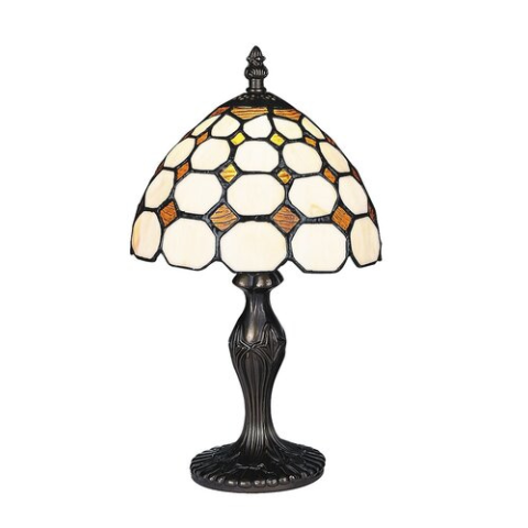 A Tiffany lámpabúrás éjjeli lámpa, egyedi, kézzel készült termék, amely remek választás, ha a klasszikus elegancia mellett egyedülálló, különleges darabot keres. Technikai adatai: Tiffany lámpabúrás asztali lámpa 1 db foglalattal. 36,5 cm magas és 20 cm á..