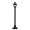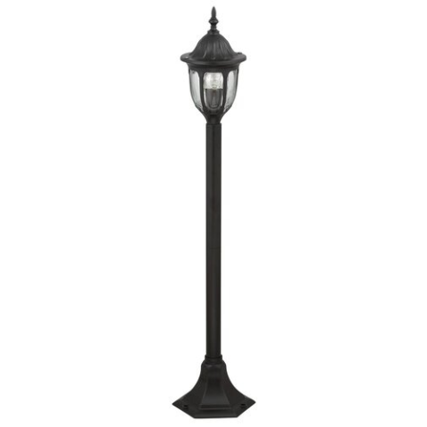 Klasszikus megjelenésű kültéri talpas lámpa 1 db foglalattal. 102 cm magas, a lámpatestnél 19 cm átmérőjű, fekete színű, fémből készített lámpatest és üvegbúra, IP43-as védettséggel. A lámpatest E27-es foglalatú, max. 60W teljesítményű fényforrással haszn..