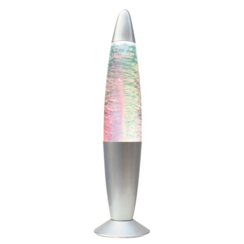 Dekor lámpa hangulatvilágítással, beépített RGB LED fényforrással, DC 5V tápegységgel és USB töltőkábellel. 33 cm magas, 9 cm átmérőjű, fém és üveg kombinációjú szerkezet. Vízzel feltöltve az RGB LED fényforrás – forgószél-effekt mellett – változó alapszí..