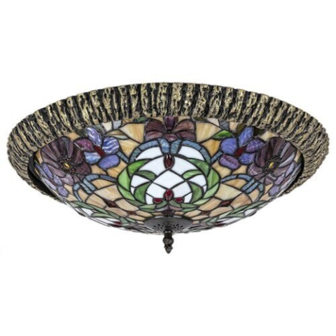 A Tiffany lámpabúrás mennyezeti lámpa, egyedi, kézzel készült termék, amely remek választás, ha a klasszikus elegancia mellett egyedülálló, különleges darabot keres. Technikai adatai: Tiffany lámpabúrás mennyezeti lámpa 2 db foglalattal. 44 cm átmérőjű, b..
