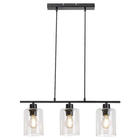 Az indusztriális stílusú Miroslaw függeszték modern nappalink, hálószobánk vagy dolgozószobánk berendezésének jellegzetes darabja lehet. A matt fekete színű, fém lámpatestet három henger alakú, átlátszó üvegbúra egészíti ki, amelyek teljes egészében látni..