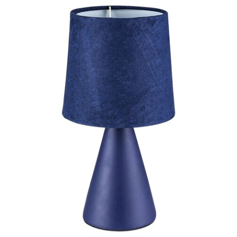A kisméretű, megjelenésében melegséget sugárzó Nalani éjjeli lámpa helyet kaphat hálószobánkban, az éjjeliszekrényen vagy a nappaliban, egy alacsonyabb asztalon. A kerámiából készült, mélykék lámpatestet ugyanilyen színű, bársonyos textil búra egészíti ki..
