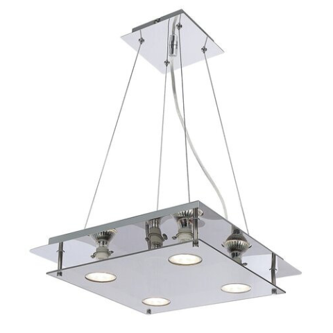 A Naomi 2 Rábalux 2648 függesztett lámpa modern kialakításával és négy GU10 foglalattal rendelkező LED fényforrással rendelkezik, melyeket a csomag tartalmaz. A lámpatest anyaga fém és üveg, színe ezüst és nikkel, ami elegáns megjelenést biztosít bármely