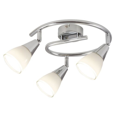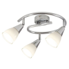 Modern megjelenésű mennyezeti spotlámpa 3 db foglalattal. 25,5 cm átmérőjű, króm színű fém lámpatest és pozícionálható, fehér színű üveg lámpabúrák, IP20-as védelemmel. A lámpatest E-14-es foglalatú, max. 3x 40W teljesítményű energiatakarékos fényforrások..