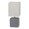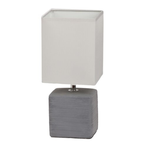 Meghitt hálószobai hangulatot árasztó, modern, egyben minimál stílusú éjjeli lámpa. Szürke színű, kerámiából és fémből készített lámpatesttel és szürke színű textil lámpabúrával, hálózati vezetékkel és kapcsolóval, 30 cm-es magassággal, 13,5 cm-es széles..