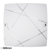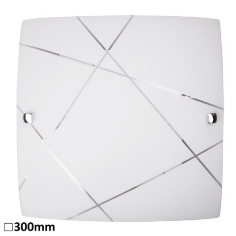 Modern megjelenésű mennyezeti lámpa, 30 x 30 cm-es méretben, fém szerkezettel, fehér színű, vonal mintás, vastag opálüvegbúrával. E27-es foglalatban maximum 60W teljesítményű, halogén vagy LED fényforrással is használható...