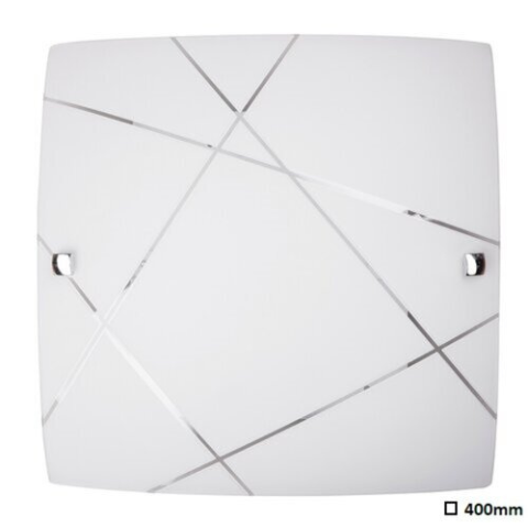 Modern megjelenésű mennyezeti lámpa, 40 x 40 cm-es méretben, fém szerkezettel, fehér színű, vonal mintás, vastag opálüvegbúrával. 2 db E27-es foglalatban maximum 2x 60W teljesítményű, halogén vagy LED fényforrásokkal is használható...