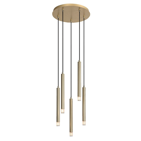 A Rábalux Ramira ötös függesztéket azoknak ajánljuk, akik minimalista stílusú függő lámpát keresnek, amely modern otthonuk szinte bármely helyiségébe jól beilleszthető. A lámpa fémből, arany színben készül átlátszó akril búrákkal és színben a lámpafejekke..