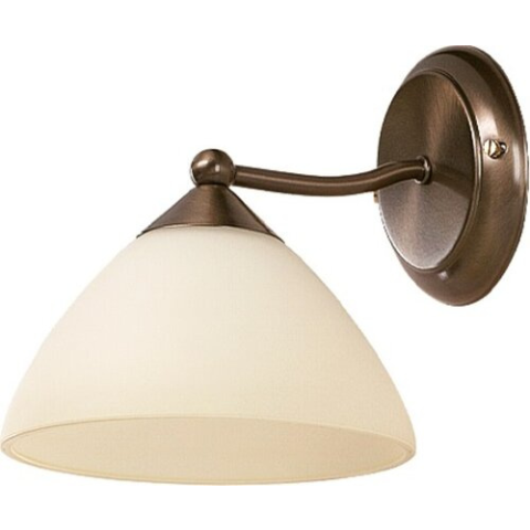 Klasszikus megjelenésű falikar 1 db foglalattal. 13 cm magas, 22 cm kinyúlású, bronz színű fémből készített lámpatest krém színű üveg lámpabúrával. A lámpatest E-14-es foglalatú, max. 40W teljesítményű energiatakarékos fényforrással is használható...