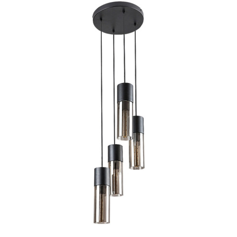 A Ronno Rábalux 72054 függesztett lámpa négy E27-es foglalattal rendelkezik, amelyekhez cserélhető fényforrások illeszthetők. A lámpatest fő anyaga fém és üveg, fekete és füstszínű kivitelben, amely modern megjelenést biztosít a lakásvilágításban. A lámpa