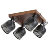 A Mintás mennyezeti spot lámpa 4 foglalattal, Rotem Rábalux 3299 típusú modell, vintage stílusú kialakítással rendelkezik, amely fém és fa anyagok kombinációjából készült. A lámpatest négy darab E14 foglalattal van ellátva, amelyek cserélhető fényforrások