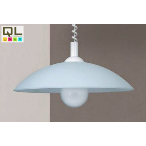 Időtlen megjelenésű függeszték 1 db foglalattal. Állítható, de maximum 120 cm lelógású, 40 cm átmérőjű, fehér színű műanyagból készített függeszték és üveg lámpabúra, IP20-as védelemmel. A lámpatest E27-es foglalatkialakítású, max. 60W teljesítményű energiatakarékos fényforrással is használható.