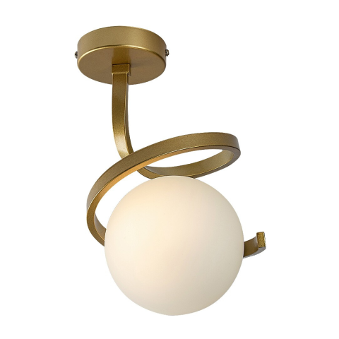 A Rábalux Sarabi mennyezeti lámpa nagyszerű választás, ha kreatív formatervezésű, elegáns lámpát keresünk, amely a szoba berendezésének éke lehet. A kanyargós fém lámpatest ragyogó arany színben pompázik, míg a hozzá kapcsolódó gömb alakú üvegbúra fehér. ..