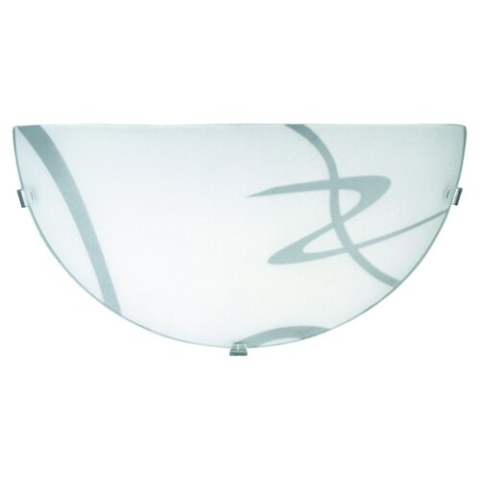 30 cm széles, retro megjelenésű, geometrikus formákkal díszített fali lámpa. Fém és műanyag szerkezet, mintás opálüveg lámpabúrával. E27-es foglalatában maximum 60W teljesítményű, halogén vagy LED fényforrással használható...
