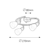 Időtlen stílusú spotlámpa, 3 darab foglalattal. 27 cm átmérőjű, antik barna színű fém szerkezet és pozícionálható, krém színű üvegbúrák, IP20-as védelemmel. A lámpatest E14-es foglalatú, max. 3x 40W teljesítményű, halogén vagy energiatakarékos fényforrás..