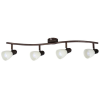 Időtlen stílusú spotlámpa, 4 darab foglalattal. 70 cm széles, antik barna színű fém szerkezet és pozícionálható, krém színű üvegbúrák, IP20-as védelemmel. A lámpatest E14-es foglalatú, max. 4x 40W teljesítményű, halogén vagy energiatakarékos fényforrások..
